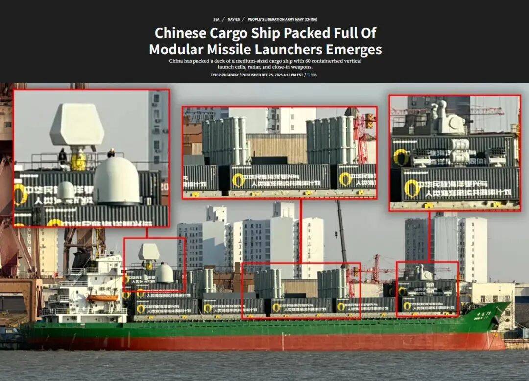 中国把舰载武器按照集装箱的尺寸进行标准化设计后,让这些武器拥有了可以用卡车随意运输,然后随意吊装安装在任何一个货船上的能力,一夜之间甚至几个小时就可以把一艘民用货船改装成简易版052D导弹驱逐舰。