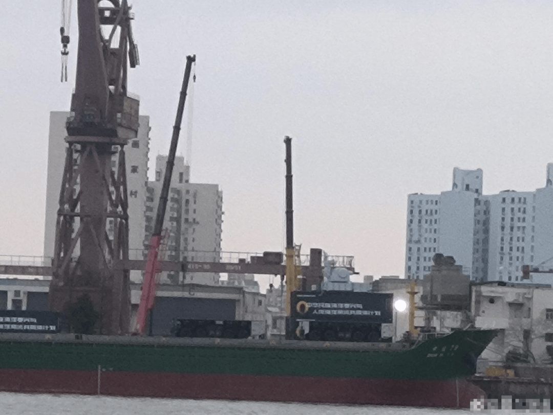 无数蹲守拍摄那艘民用版“导弹驱逐舰”的外国记者们,震惊的发现一个形状奇怪的卡车开上了集装箱船。