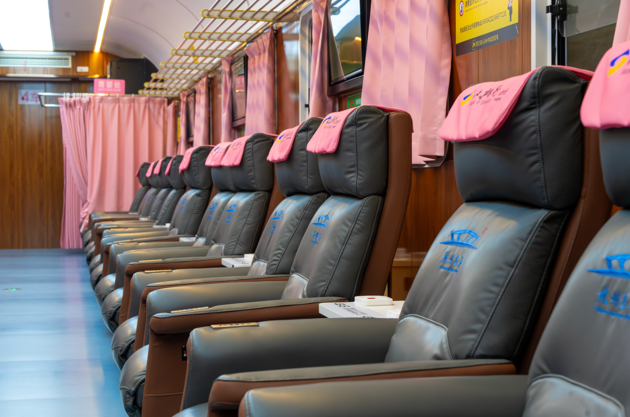 在大家常见到的复兴号智能动车组上,一等座和二等座增加了独立的USB与Type-C充电接口,部分商务座席位还配备了无线充电面板。